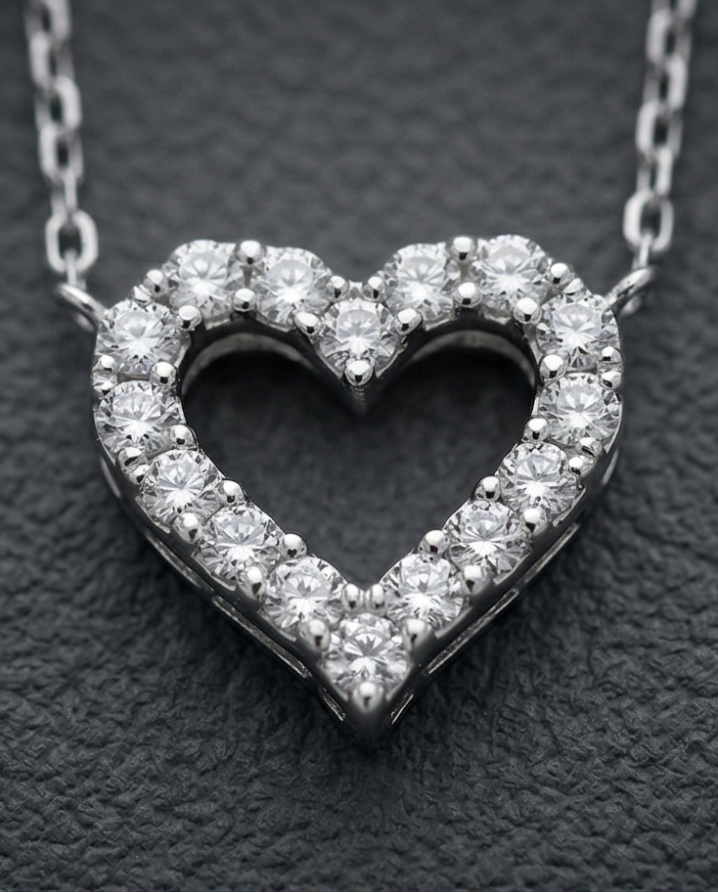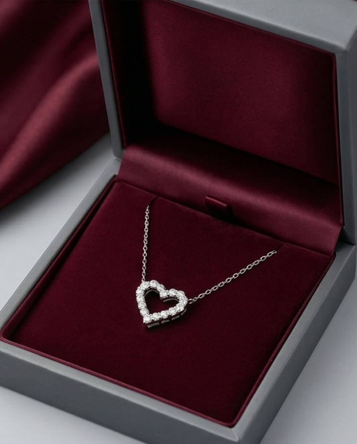 A light, airy reimagining of a classic symbol. The Lyric Outline features a delicate, open-work heart silhouette encrusted with micro-pavé lab-grown diamonds. By removing the solid center, this design offers a modern, "skin-contact" look that feels youthful and effortless.