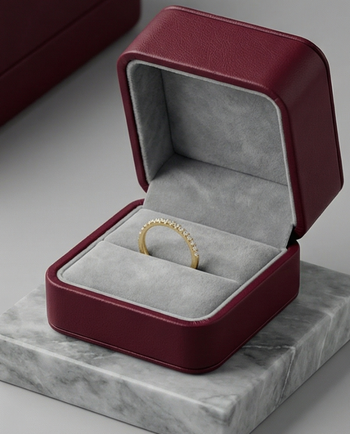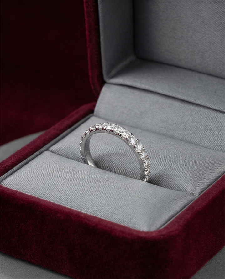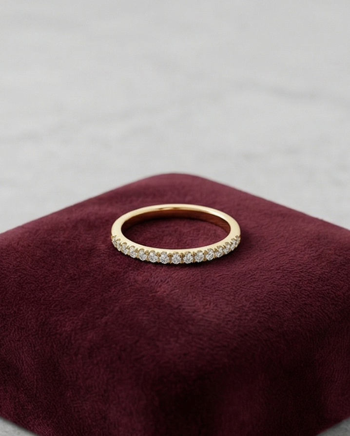 Essential luxury at its most refined. This half eternity band features a continuous, unbroken row of brilliant round-cut lab-grown diamonds. Each stone is secured in a minimalist shared-prong gold setting.